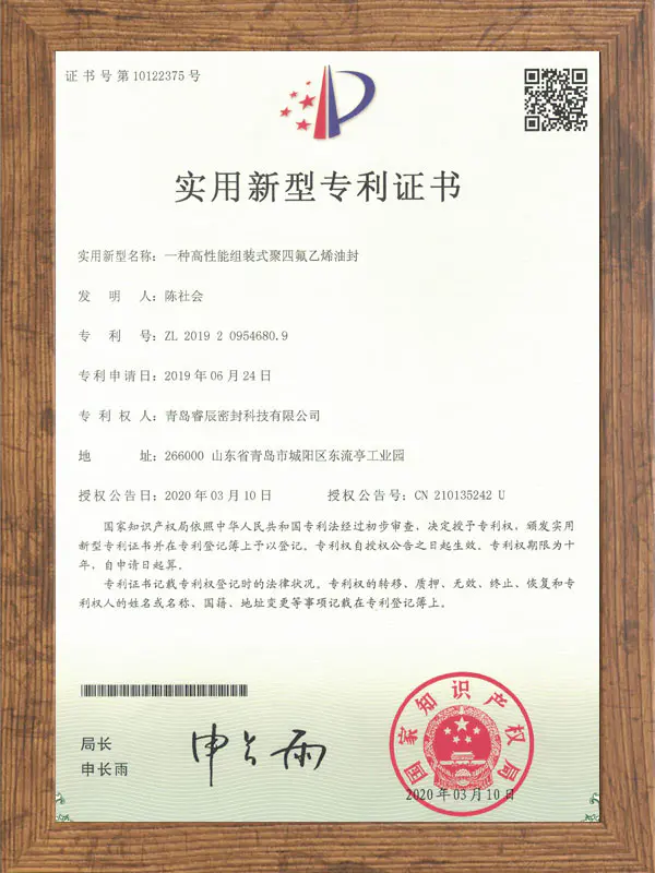 ★ Ruichen Sealing ticarət markası 2015-ci ildə dövlət tərəfindən qeydə alınıb.