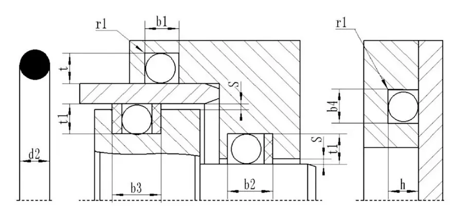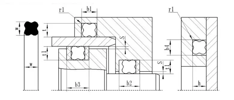 1. Statik möhürləmə və ya qarşılıqlı xətti hərəkət: (1) Çuxur möhürlənməsi: Ulduz şəkilli üzüyün daxili diametri yivlə uyğun olmalıdır və ya yivin alt diametrinin təxminən 2% -dən azdır. Çünki əvvəlcədən sıxılma yolu ilə yaradılan sıxılma qüvvəsi, ulduz şəkilli möhür üzüyünün bükülmə və yuvarlanmasına mane ola bilər. (2) Mili Sızdırılması: Ulduz şəkilli halqanın daxili diametri şaftın xarici diametrindən təxminən 0,2 ~ 0.3mm və ya milinin xarici diametrindən təxminən 1% daha böyük ola bilər. Nəticədə möhür ringi quraşdırmaq və daha uzun bir xidmət həyatına sahib olmaq daha asan olacaq.