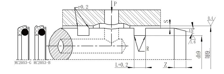 RC2054| Diyar aralığı D h9 | Yiv diametri d h9 | Yivli genişliyi L+0.2 | Radial rəsmiləşdirmə smaksimum | Dairəvi künclər Rmaksimum | Qarmaqarışıq Zdəq | |